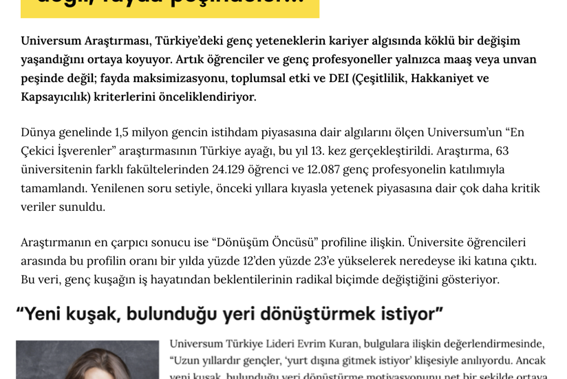 Marketing Türkiye – Türk genci işin rotasını değiştiriyor: Artık kâr değil, fayda peşindeler…